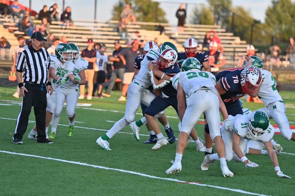 RUSHING – Mendon: 4 41-283, 23 1-9, 2 4-7, 20 1-1. Totals 47-300. BD: Trevor Karpinski 12-69, Caden Kubacki 16-59, Liem Roe 10-48, Cayden Allshouse 5-15, Kaiden Lidster 3-7. Totals 46-198.